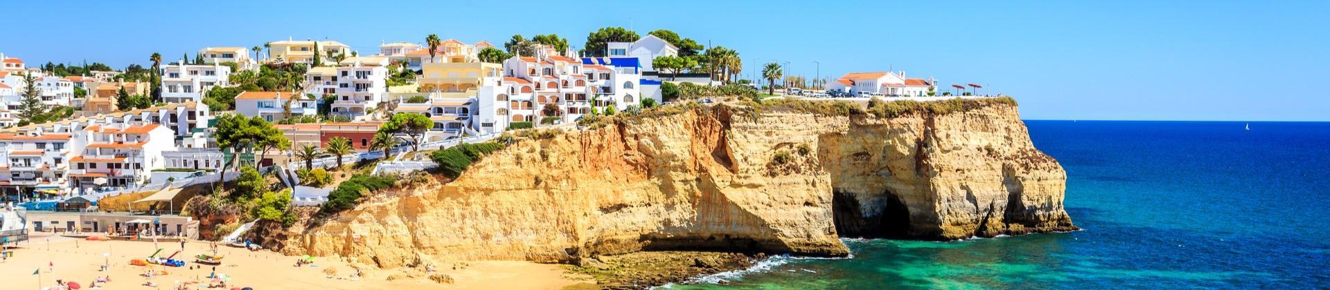 Carvoeiro (Portugal) is a place with a hot climate. Temperatures during the day are in the range from 16 °C (61 °F) in January to 29 °C (84 °F) in July. Temperatures during the night go from 8 °C (46 °F) in January to 18 °C (65 °F) in August. The highest sea temperatures in Carvoeiro are in August with 21 °C (69 °F) and the lowest in February with 15 °C (59 °F). The driest month is July with just 0 days of rain, on the contrary, the month when it rains the most is November with 9 days of rain.
